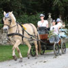 oder gemütlich auf dem Kremser führt uns der Weg durch Wiesen und Wälder und die Reiter auch über manche Sprünge.